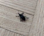 Kuva on aika tumma, eikä hyönteisen kokoa ole kysymyksen yhteydessä mainittu, mutta kuvan kontrasteja korjailemalla tulevat näkyviin kellertävät laikut kovakuoriaisen peitinsiivissä ja lajiksi varmistuu tukkimiehentäi (Hylobius abietis).