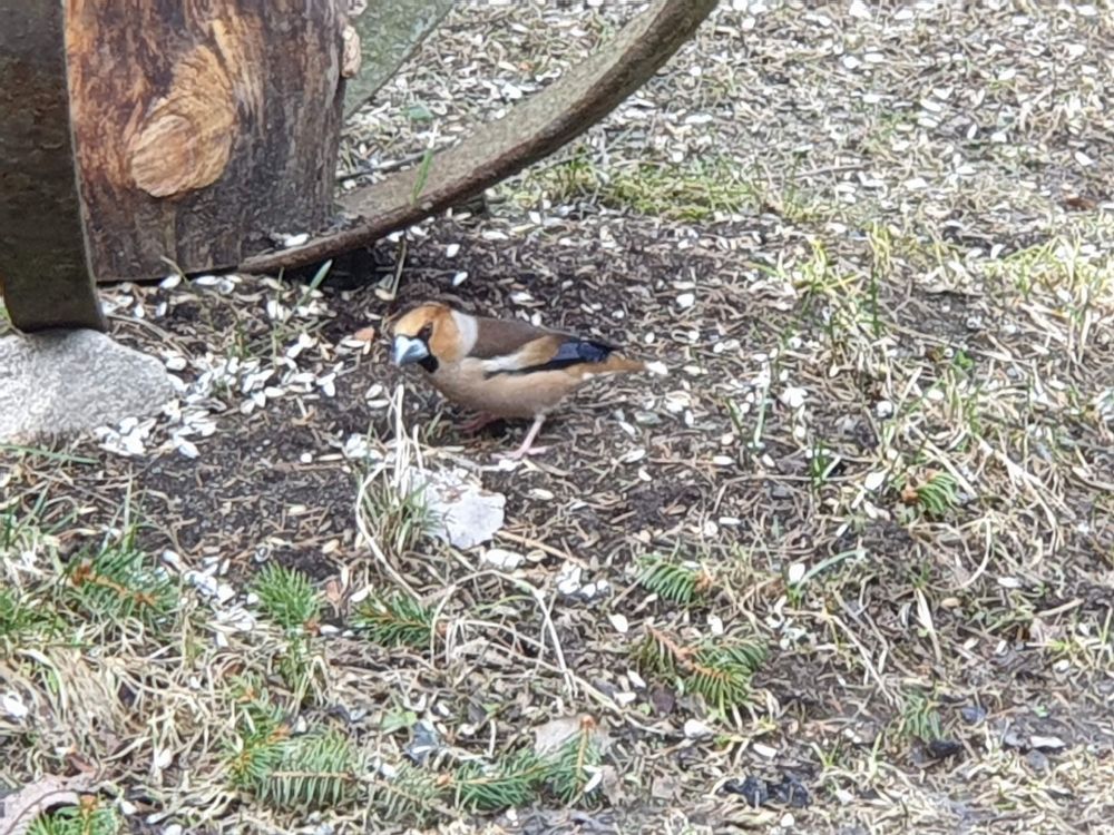 Lintujen ruokinta paikalle talon pihapiirissä täällä Nivalassa 18.4 ilmestyi outo lintu ja ei löydetty lintukirjasta eikä netistä saman näköisestä linnusta kuvaa. Mikähän mahtaa olla tämän näköinen lintunen nimeltään? Kuvat otettu kännyllä 10x zoomilla eli ei hirveän tarkkoja kuvat mutta jospa selvän saa. Nokka on kiiltävän sini hopean värinen ja aika paksun mallinen ja yksi lintu vain oli.